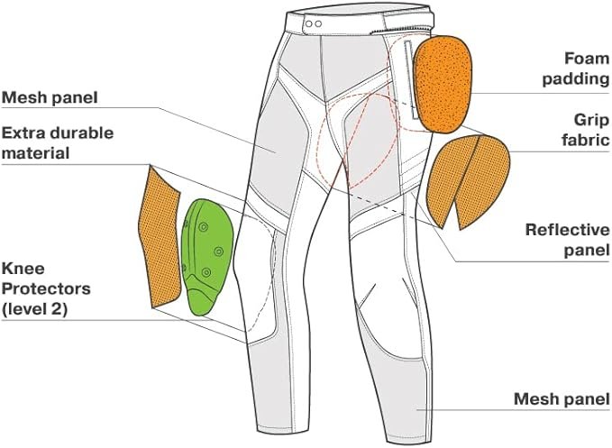 A pesar de su enfoque ligero, estos pantalones de protección para moto incorporan elementos clave de seguridad: