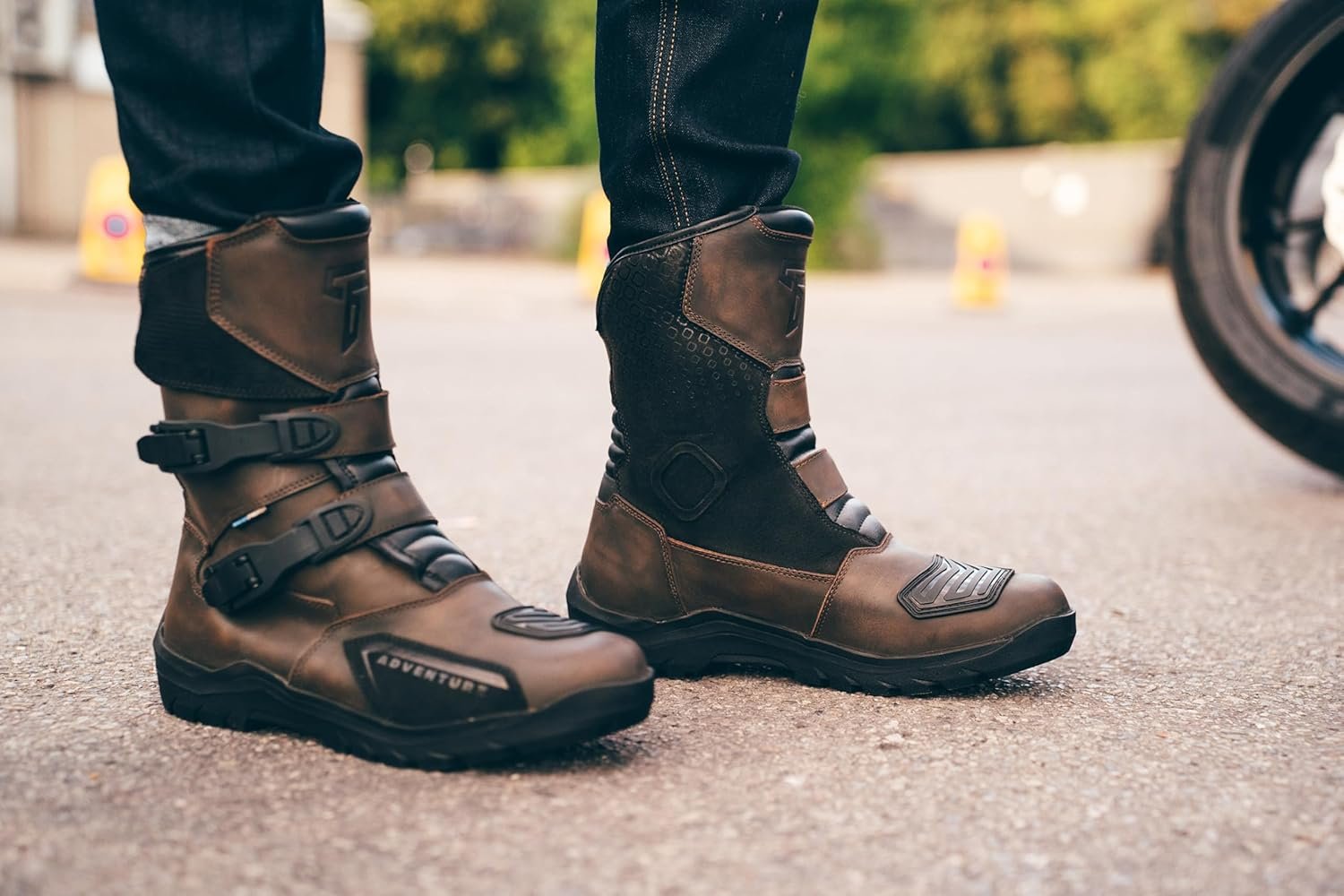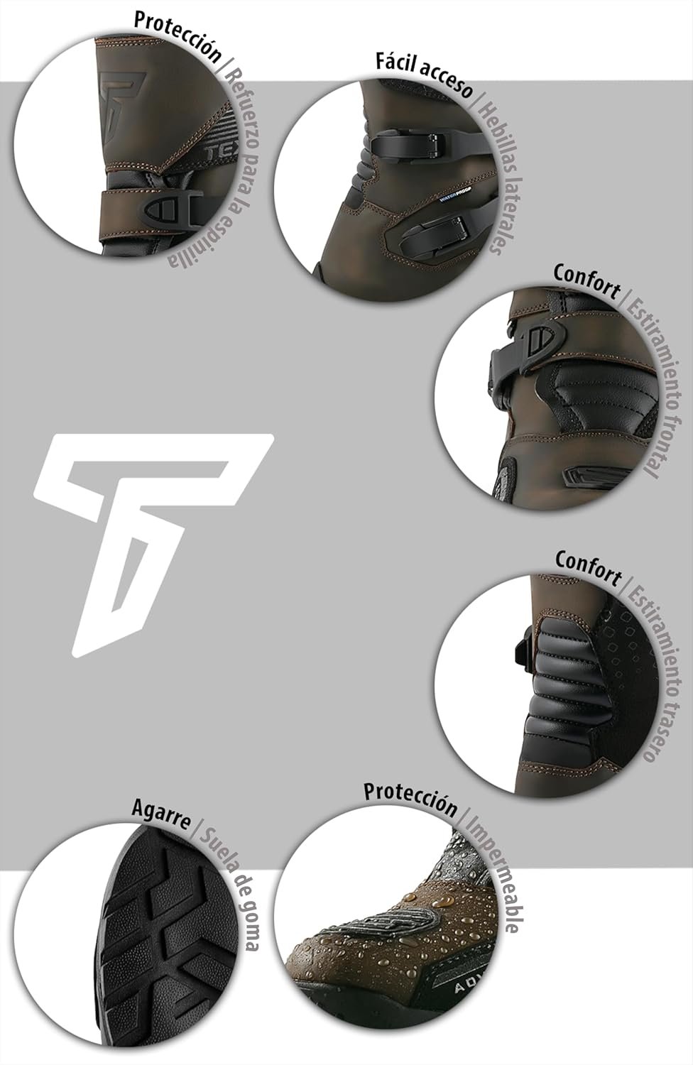 Su diseño incorpora refuerzos integrados en la puntera, talón y tobillo, que mejoran la protección frente a impactos y abrasión, asegurando que las botas cumplan con los estándares básicos de protección para uso en carretera.